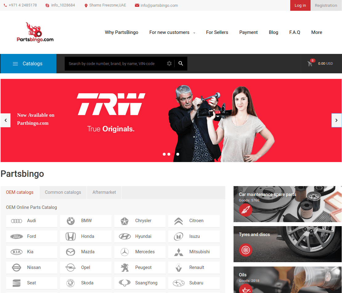 Crear la tienda de autopartes en línea con un poderoso conjunto de funciones es una tarea que se puede resolver mediante el Parts.Resource. Considera completamente la peculiaridad del negocio de venta de autopartes y tiene solicitudes de VIN, intercambios, catálogos de automóviles, conexión a proveedores 'sitios web. Comprar Parts.Resource significa proveer crecimiento y desarrollo de su negocio.